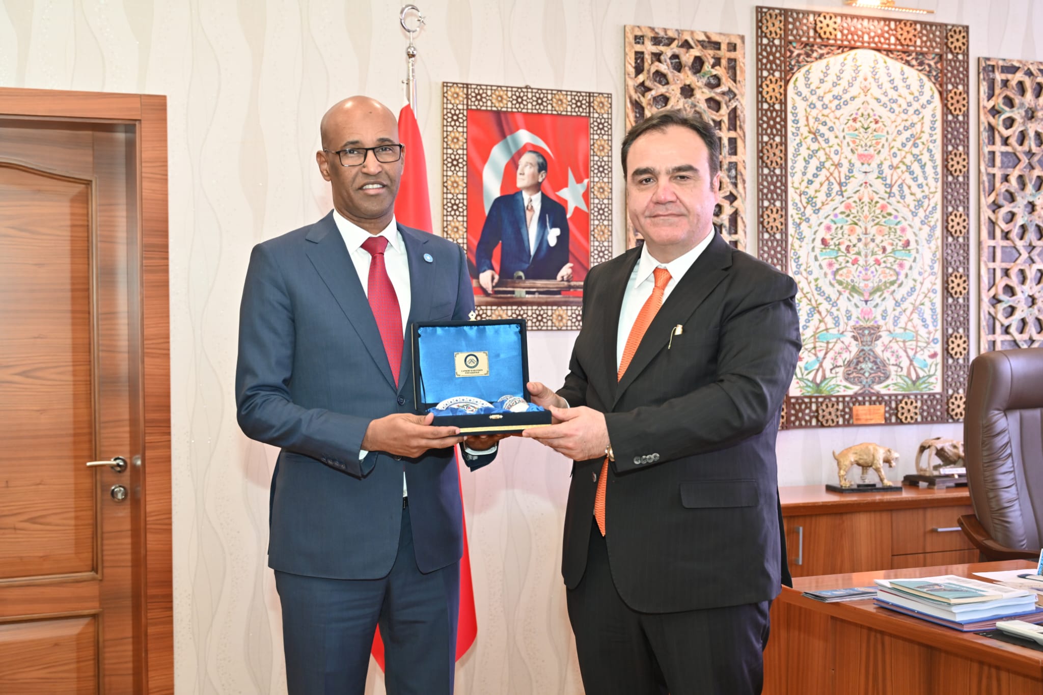 Somali Ankara Büyükelçisi Sayın Fathudin Ali Mohamed, Üniversitemizi ziyaret ederek Rektörümüz Prof. Dr. Mevlüt Karataş ile bir araya geldi.