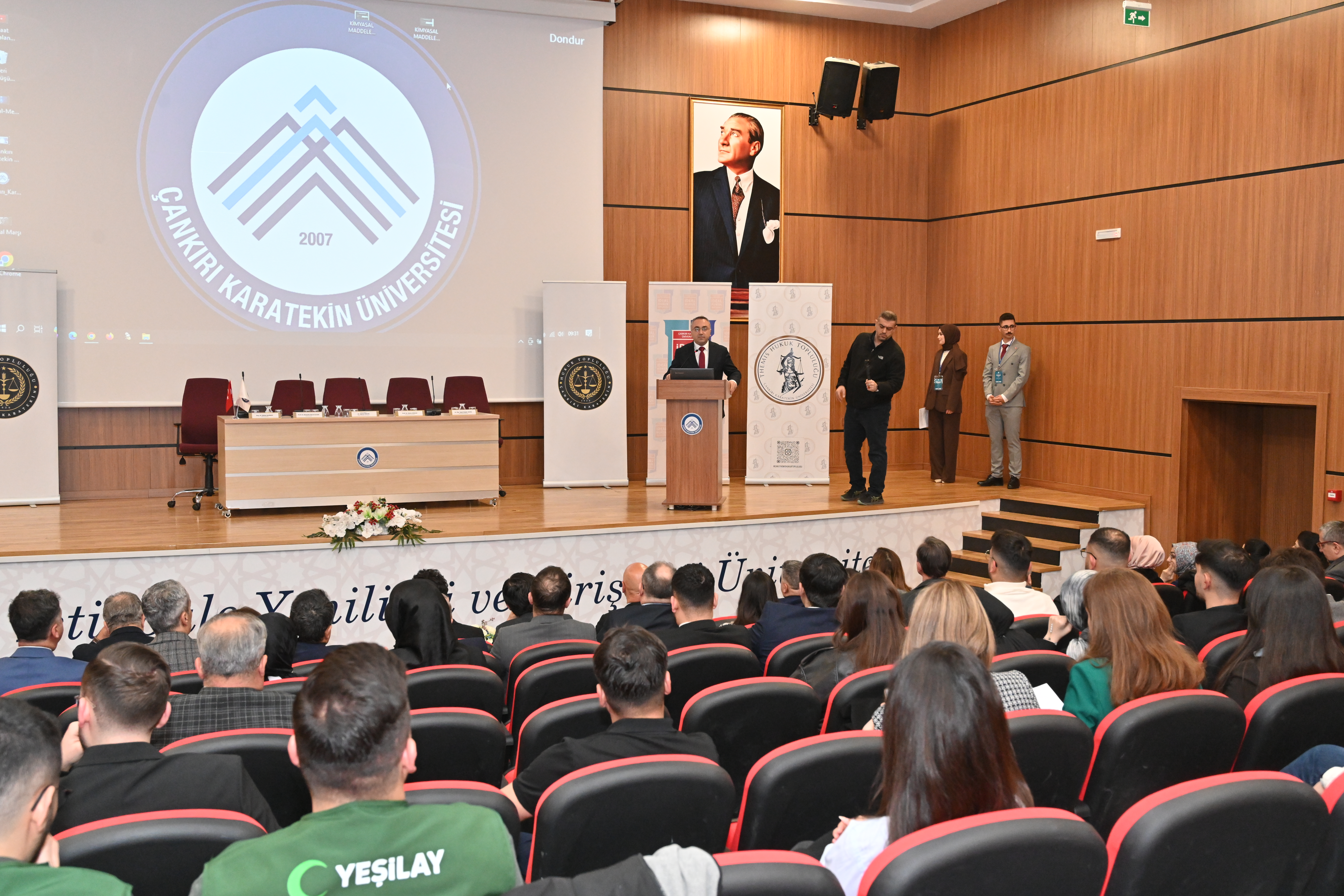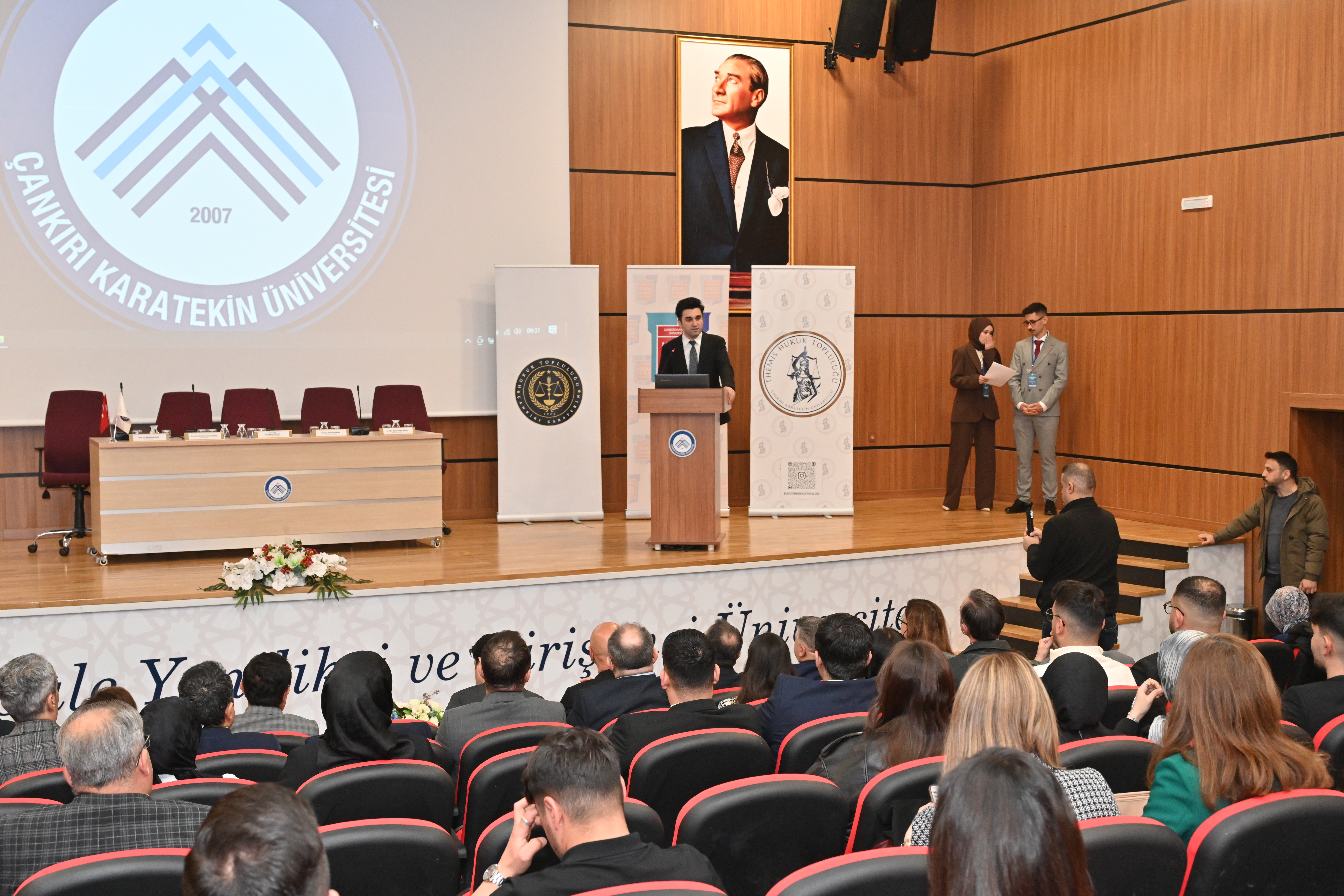 Hukuk Fakültesi ve fakülteye ait toplulukların düzenlediği sempozyuma Çankırı Cumhuriyet Başsavcısı Huzeyfe Yücedağ, Rektör Vekili Prof. Dr. İbrahim Bozkurt, Çankırı İl Sağlık Dr. Öğr. Üyesi Müdürü Yunus Emre Bulut,  Hukuk Fakültesi Dekanı Prof. Dr. Ela Özkan Canbolat, davetli konuşmacılar ile akademisyenler ve öğrenciler katıldı.